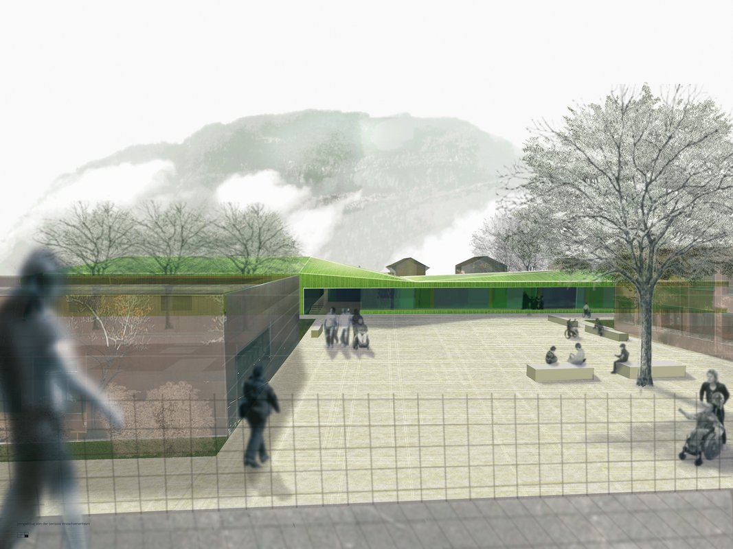 As a first principal design decision, the project is being organized horizontally on one level only. A barrier free functionality suited to the needs of disabled people is guaranteed. At the same time, the low building horizon embeds the scheme respectfully into the context. Important topographical view lines are maintained.